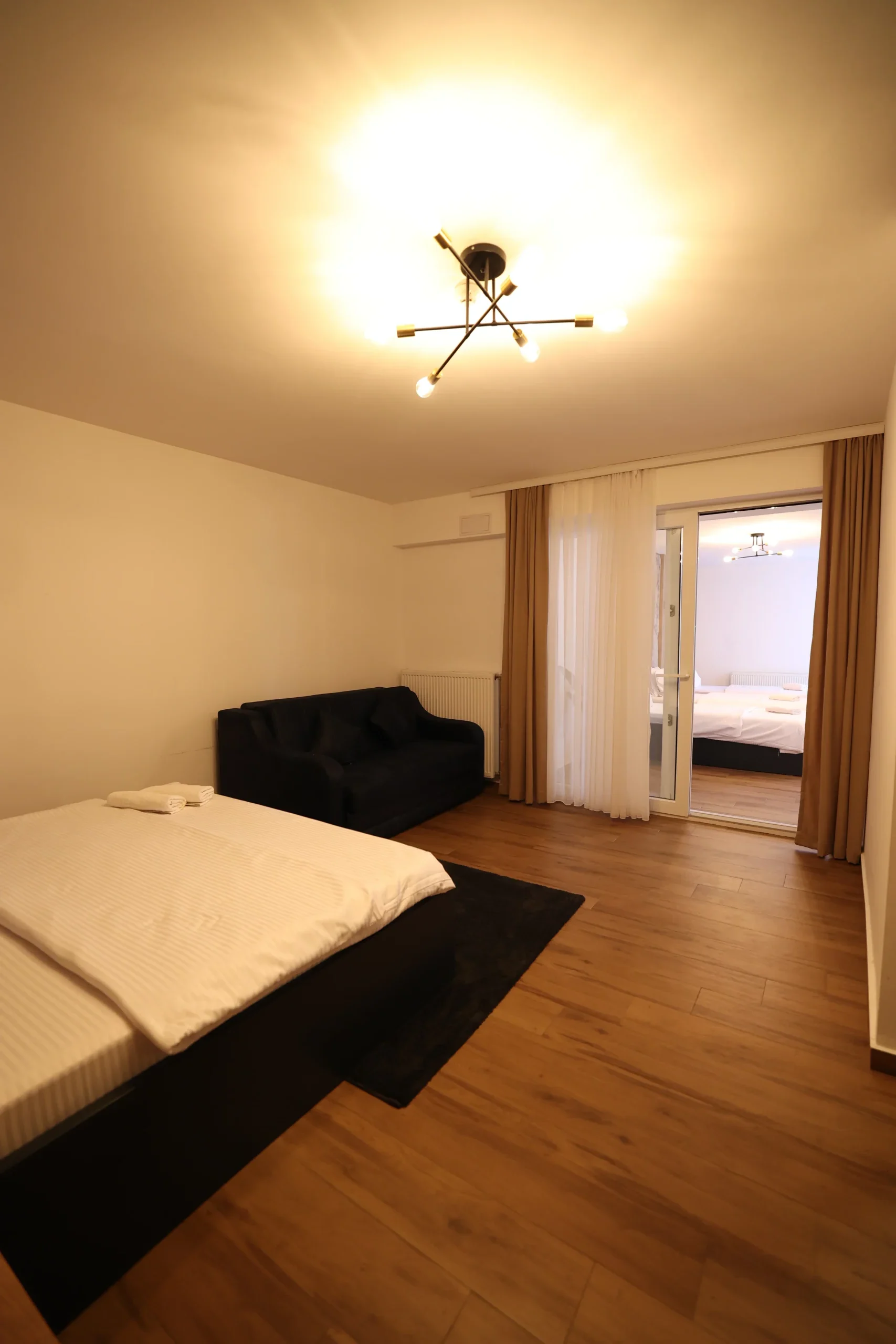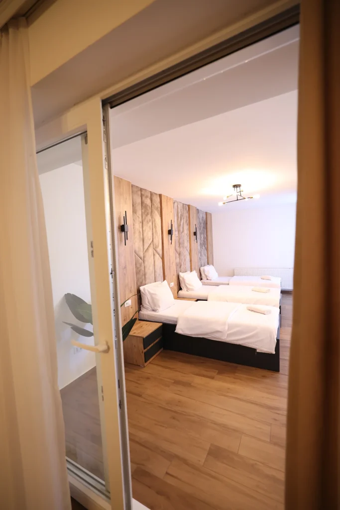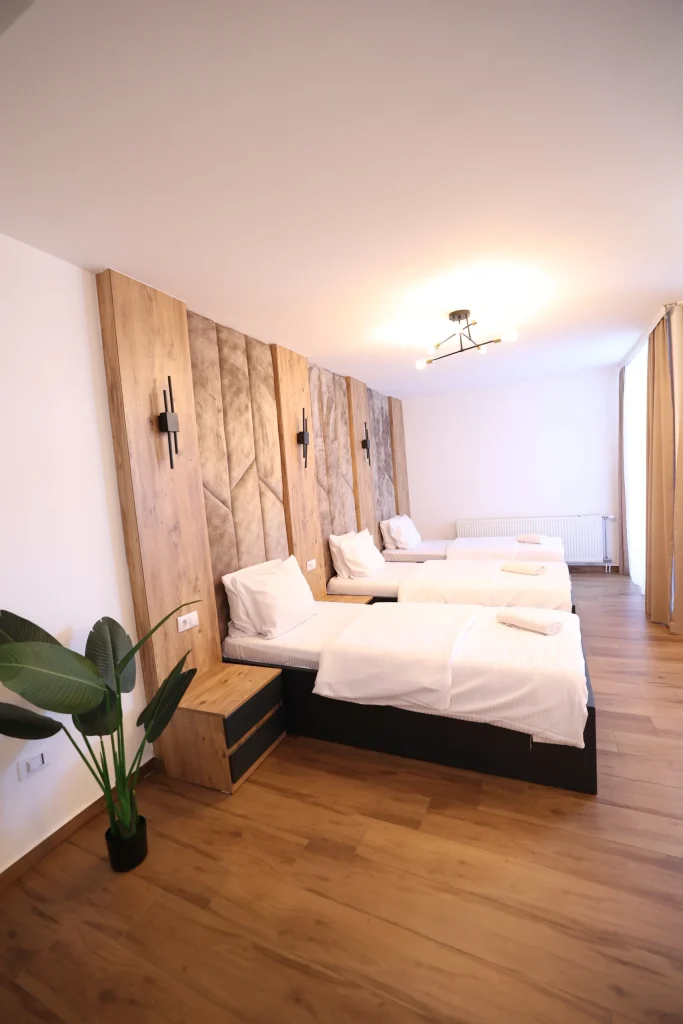 Apartamentet tona janë me hapësirë të bollshme, ku ju mund të relaksoheni pa fund me partnerin apo familjen tuaj. Një shtrat madhështor, mjedis çlodhës, ballkon, televizor dhe kanale satelitore, tualet, dush.