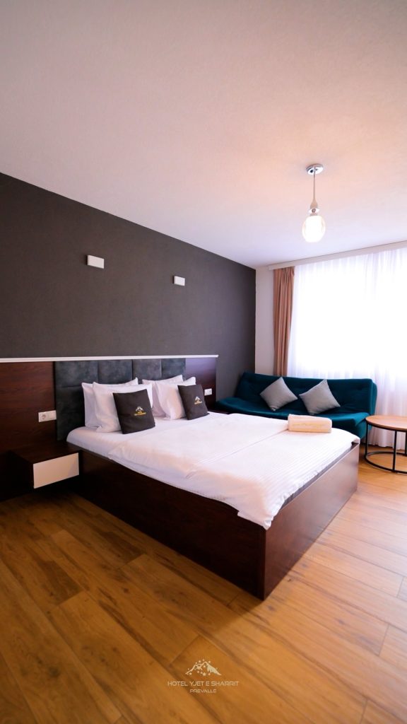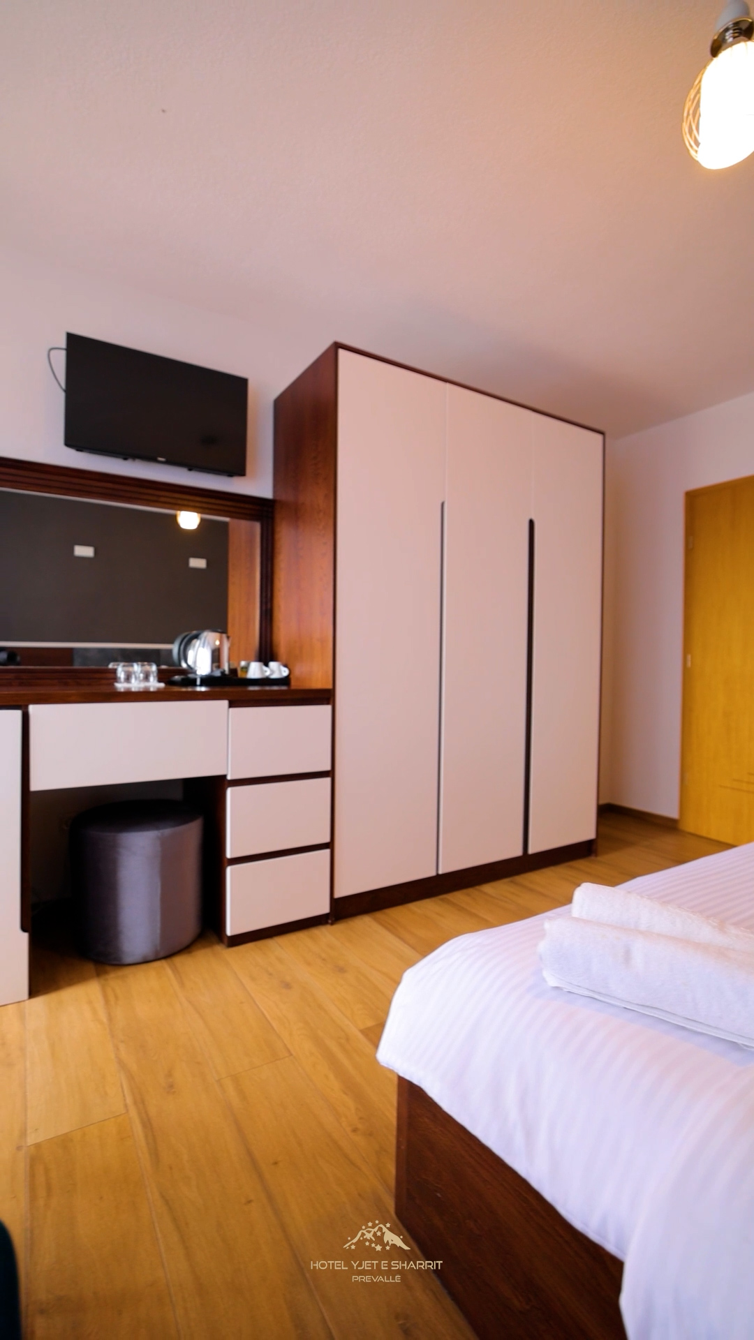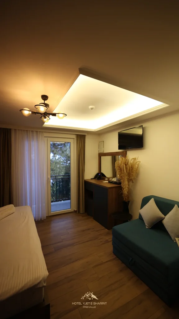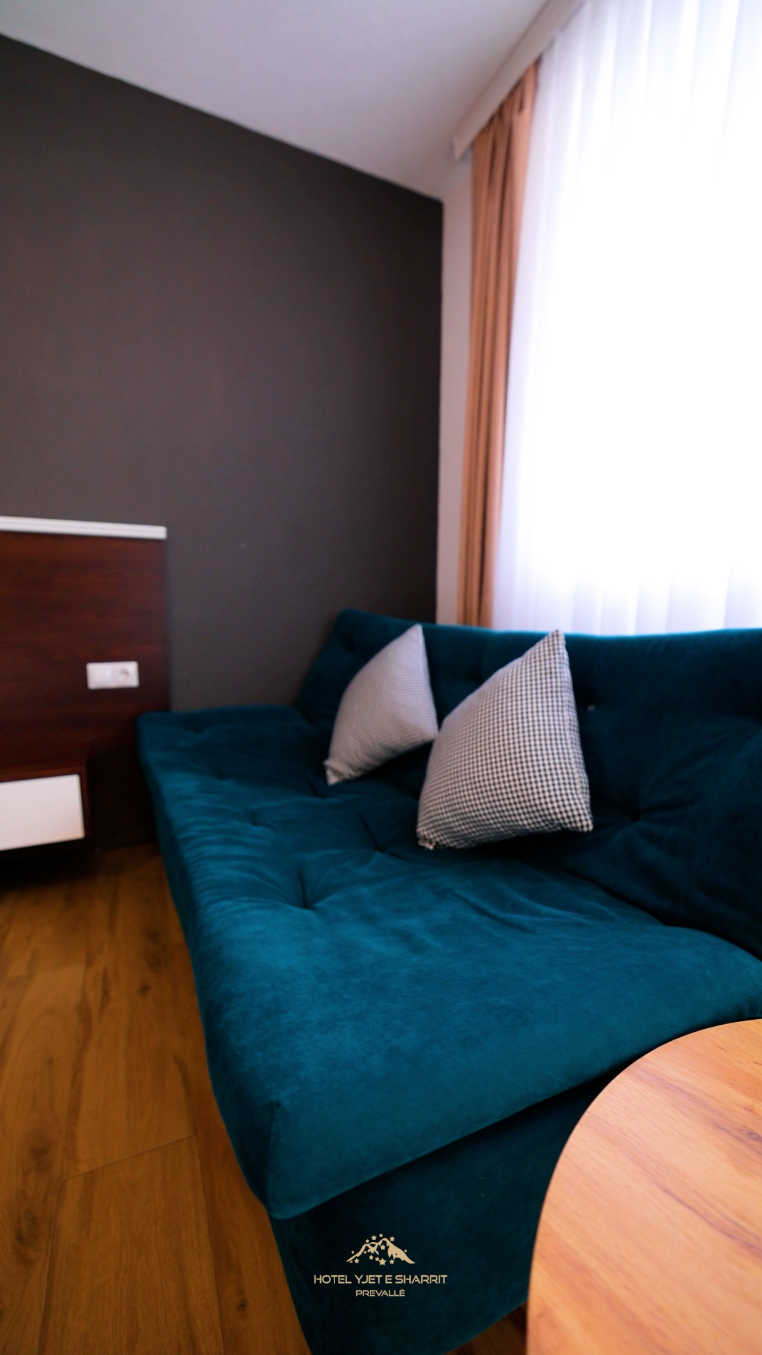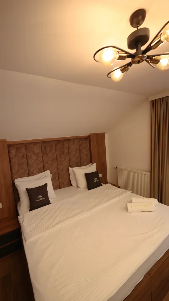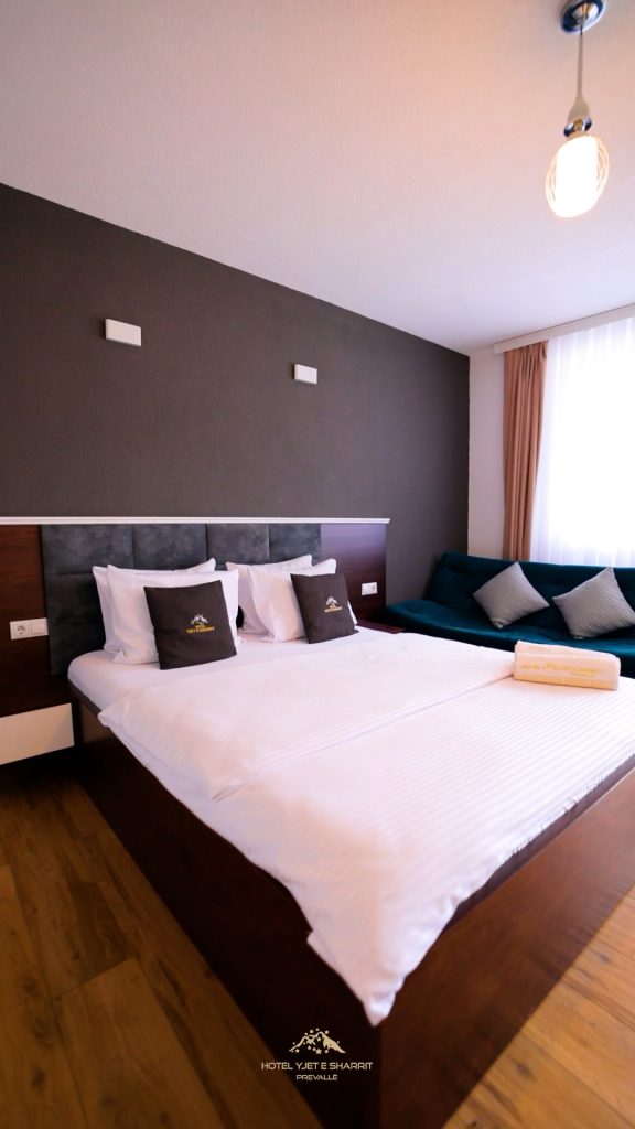 Dhomat tona janë me hapësirë të bollshme, ku ju mund të relaksoheni pa fund me partnerin apo familjen tuaj. Një shtrat madhështor, mjedis çlodhës, ballkon, televizor dhe kanale satelitore, tualet, dush.