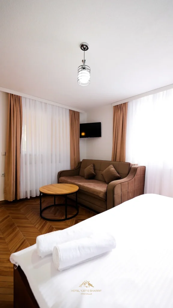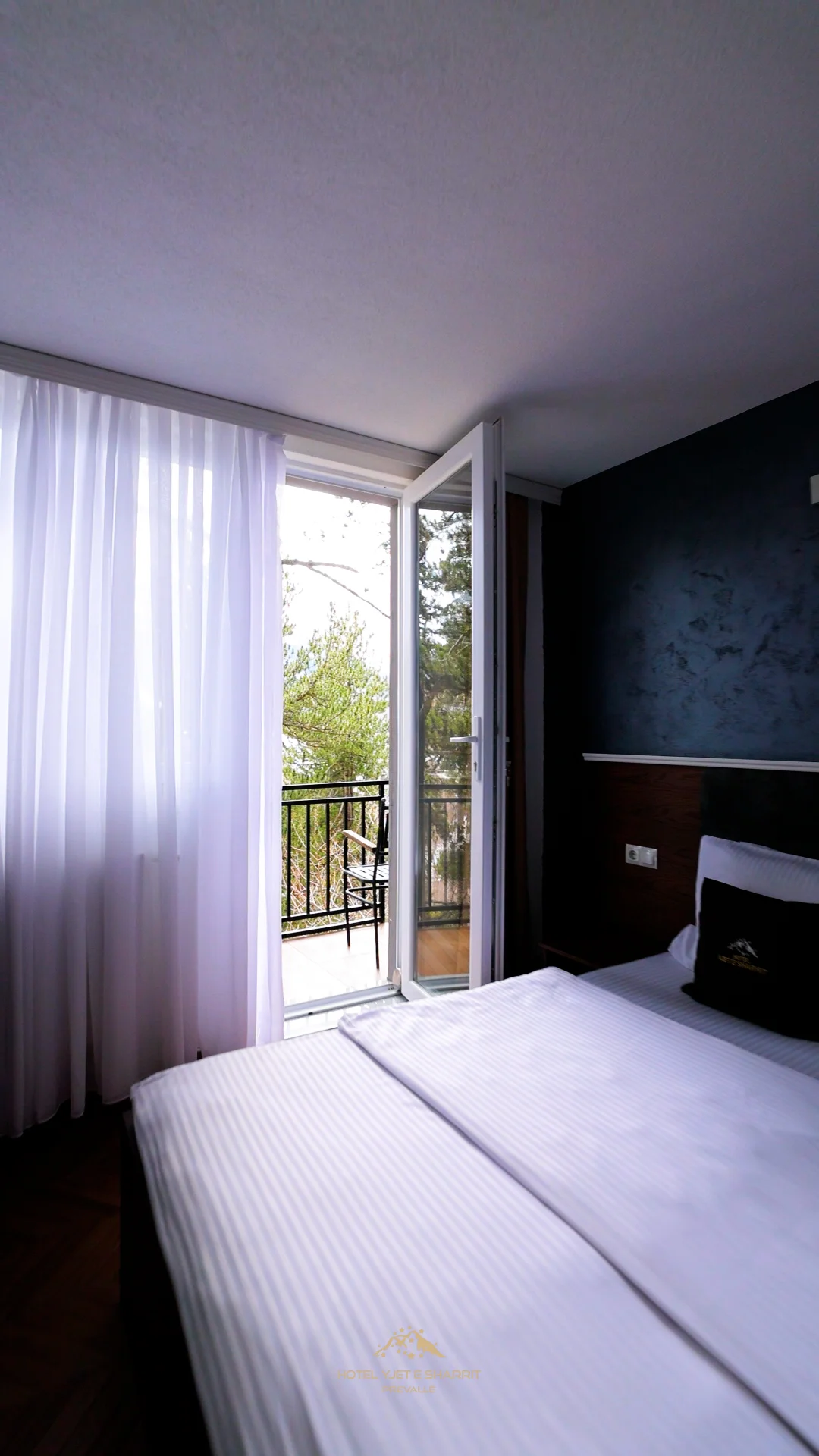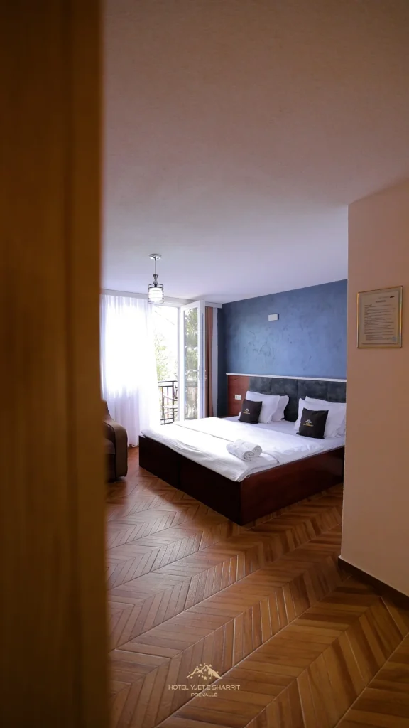 Dhomat tona janë me hapësirë të bollshme, ku ju mund të relaksoheni pa fund me partnerin apo familjen tuaj. Një shtrat madhështor, mjedis çlodhës, ballkon, televizor dhe kanale satelitore, tualet, dush.