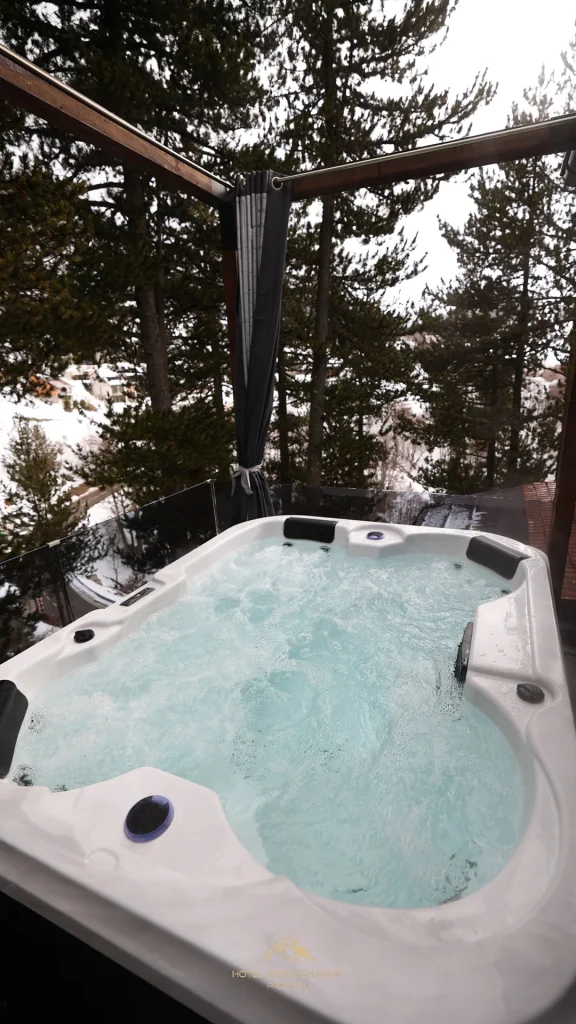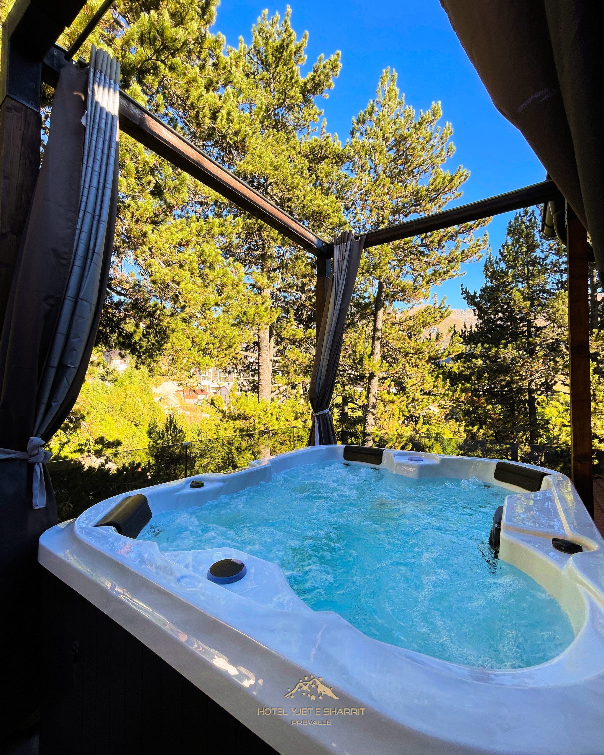 Suitat tona janë me hapësirë të bollshme, ku ju mund të relaksoheni pa fund me partnerin apo familjen tuaj. Një shtrat madhështor, divan, mjedis çlodhës, ballkon të madh me Jacuzzi, televizor dhe kanale satelitore, tualet, dush.